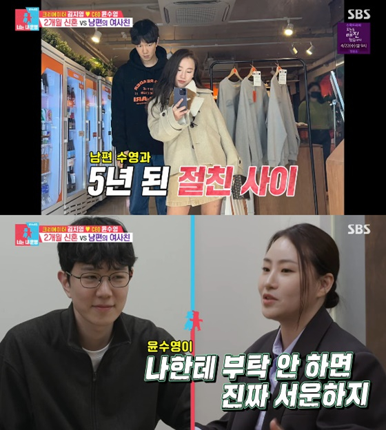 김지영과 윤수영의 꿀 떨어지는 신혼생활이 최초로 공개됐다. 7일 방송된 SBS '동상이몽 시즌2-너는 내 운명'(이하 '동상이몽2')에서는 김지영, 윤수영 부부가 출연했다.