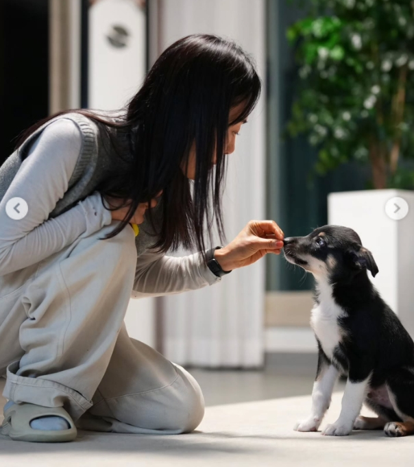 공개된 사진 속 문정희는 아직 어린 강아지를 안고 미소 짓고 있다. 오래 함께 했던 골든 리트리버 마누를 보내고 에세이집까지 펴내며 뜨거운 사랑을 드러냈던 문정희는 새로 맞은 강아지를 소개하며 행복한 모습이다.
