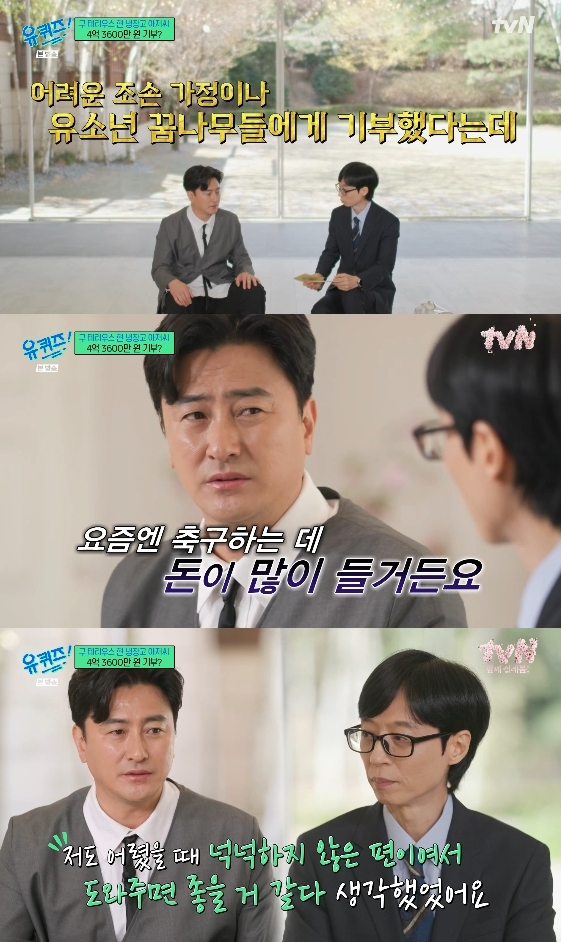 축구선수 출신 방송인 안정환이 억대 기부 소식을 전했다. 15일 방송된 tvN 예능 프로그램 '유퀴즈 온 더 블럭'에는 한국 축구 레전드 안정환이 게스트로 출연했다.